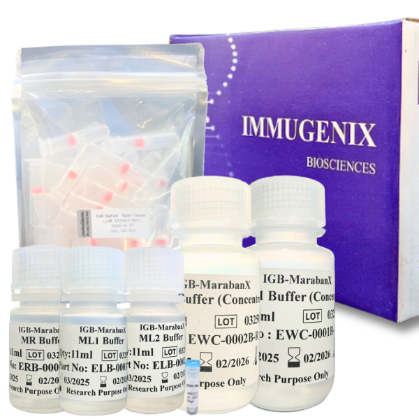 The IGB MarabanX DNA Extraction Kit provides a fast and efficient solution for isolating high-quality genomic DNA from a variety of sample types, including blood, tissue, saliva, and cultured cells. Optimized for simplicity and reliability, this kit is ideal for molecular biology applications such as PCR, qPCR, sequencing, and genotyping.
